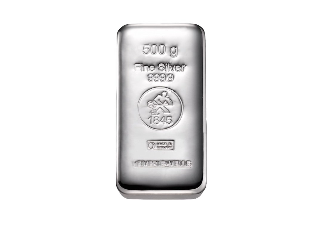 Silberbarren 500 g – Heimerle + Meule gegossen (999 Feinsilber)